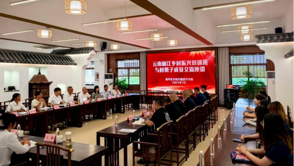 当前,塘栖村已成为全国乡村振兴领域的标杆性实践教学基地,其发展理念与操作范式已被多地学员借鉴应用于本地乡村建设实践中。实践团研学走访期间,同步列席了塘栖村与云南丽江两地村干部的专题交流座谈会。这场聚焦乡村治理经验互鉴、产业协作路径探讨的深度对话,不仅让师生直观感受到塘栖村发展模式的可迁移性,更通过“本土实践输出”与“跨区域需求对接”的现场演示,为财经人才理解“乡村发展方法论”提供了鲜活样本,全程引发师生对绿色发展与共同富裕实践逻辑的深度思考。
