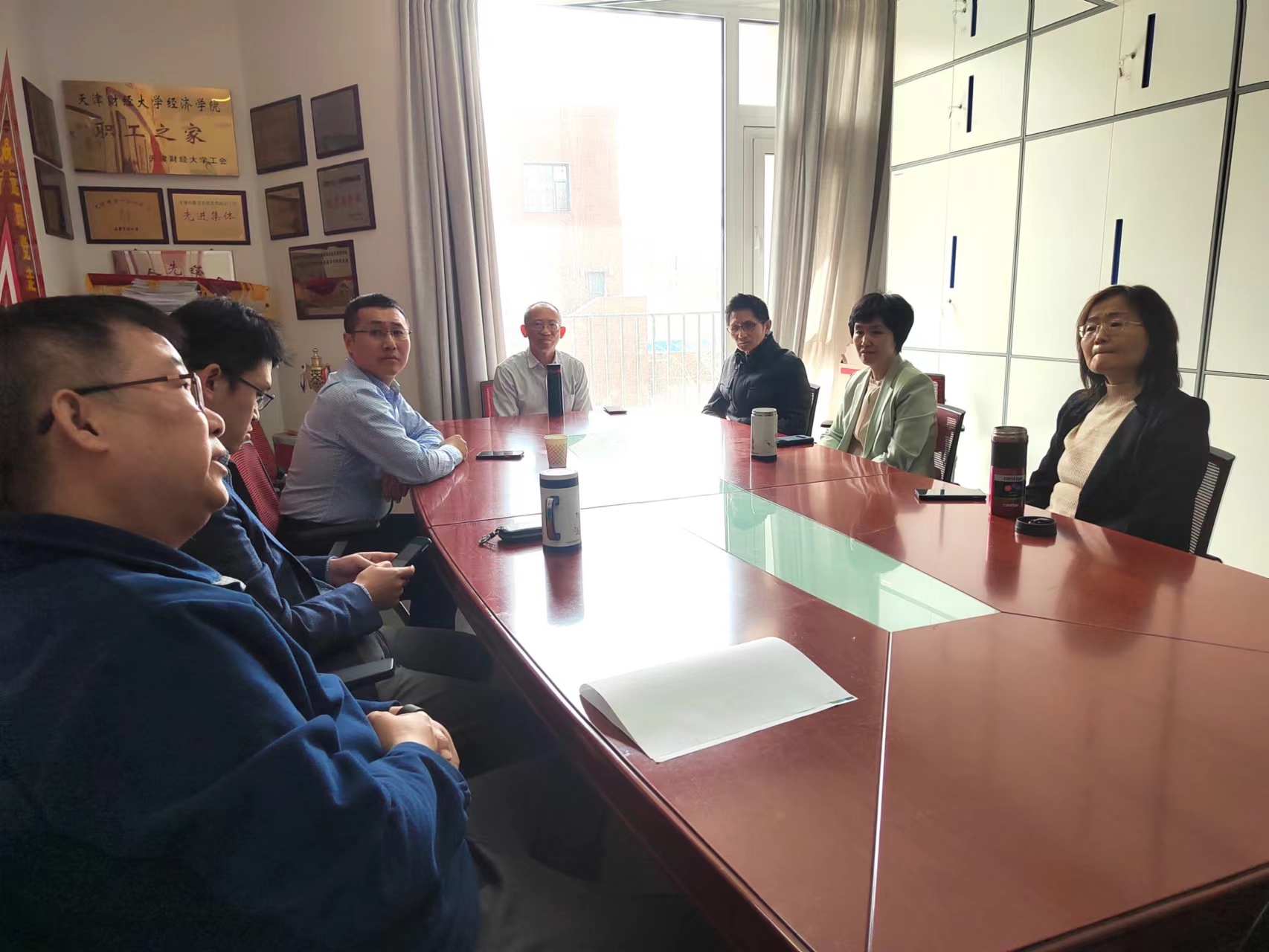 本科教学督导专家小组根据教务处关于本学期教学质量督导检查工作的文件精神,结合各专业培养方案特点,针对学院课堂教学质量进行全覆盖听课。针对督导专家的课堂评价和反馈的问题,学院于2023年3月24日上午召开本科教学督导反馈交流会,齐俊妍副院长以及其他教学督导专家小组:耿伟副书记、马国旺副院长、国际经济贸易系主任杨珍增教授、经济学系主任马红瀚副教授、经济系原系主任荣岩副教授以及刘明明教授参加此次会议。