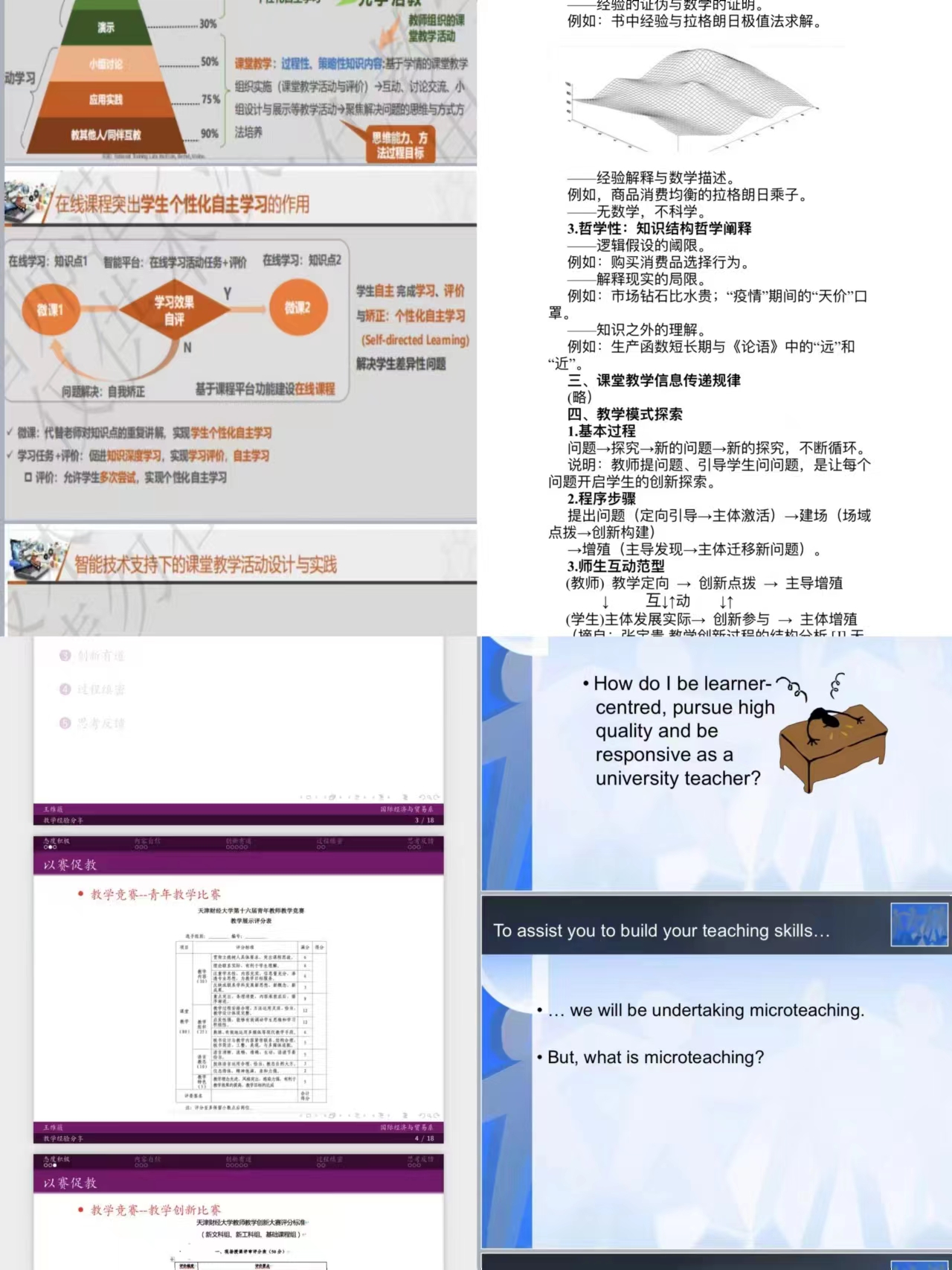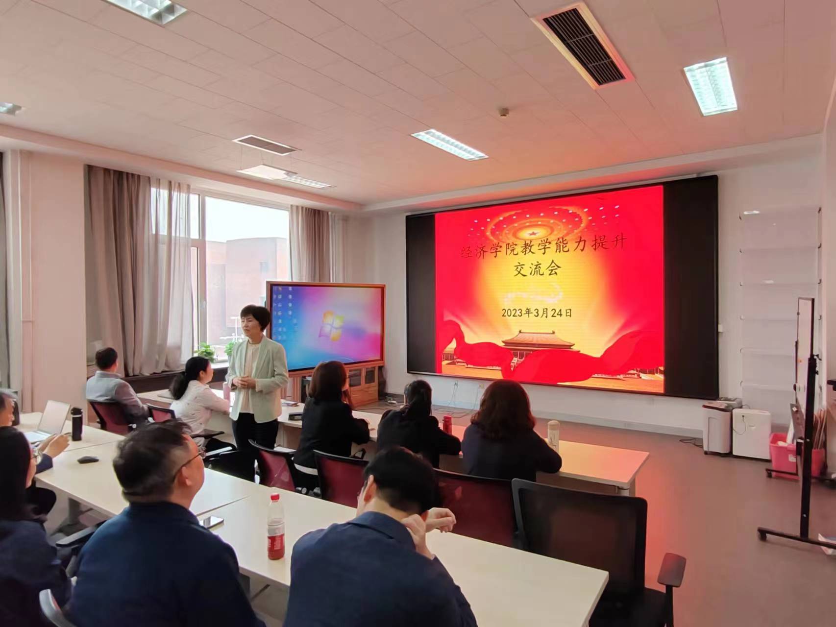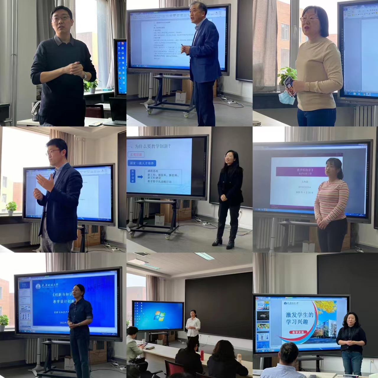 教学能力提升交流会”。会议分别邀请获得首届天津市教师教学创新大赛级三等奖、市高校青年教师教学竞赛二等奖的刘欣老师,天津市教学基本功竞赛一等奖的荣岩老师和曹杰老师,教师教学创新大赛校一等奖(职称组第一名)的王岚和王维薇老师,以及获校一等奖的刘晶老师、校二等奖的张宝贵老师、王虹老师和周彩云老师进行经验交流。全体教师参加,旨在浓厚学院一流课程建设和教学研讨的氛围,为老师们提供交流和讨论的平台,加强课程建设与提升教师教学能力。