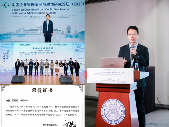 教师杨勃副教授的论文《从“单点协同”到“生态协同”:数字安全协同治理模式的动态演化机制——基于安恒信息与中国电信2012-2023年协同治理的纵向案例研究》荣获中国企业管理案例与质性研究论坛(2023)最佳论文奖,该论坛是国内规模最大、公认水平最高的工商管理案例与质性研究平台,这也是经济学院首次获得中国企业管理案例与质性研究论坛最佳论文。