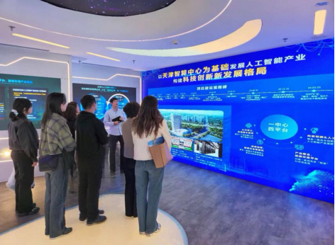 在天津人工智能算力中心,师生团队深入了解了算力中心在人工智能领域的创新成果和产教融合的应用实例,进一步拓展了师生的学术视野,深刻体会了智算中心作为关键科技创新平台在推动人工智能技术的发展与产教融合应用等方面的丰硕成果。
