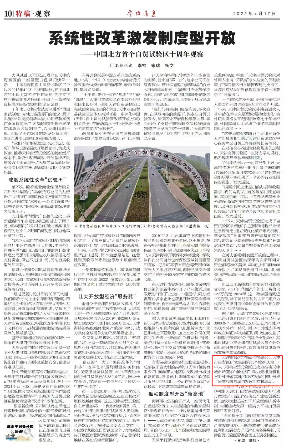 六合彩 院长、天津市自贸区研究院副院长齐俊妍认为,十年来,天津自贸试验区已成为推动天津城市转型的“催化剂”,助力天津重塑北方对外开放高地和经济发展引擎,形成了国家战略与城市发展的有机联动。