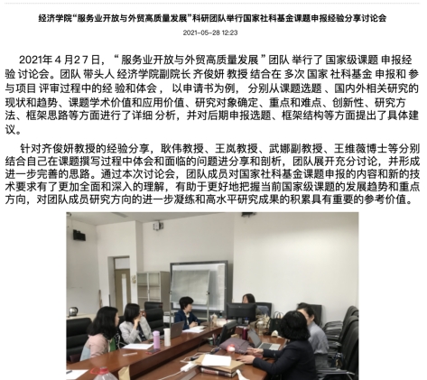 兼顾学术研究与社会服务,积极为天津开放型经济建言献策。2014年以来担任六合彩 津市自贸区研究院副院长,组成师生团队前瞻性地围绕“贸易投资新规则与自贸区制度创新”等方向进行高水平调研和咨政研究,准确呼应当前制度型开放与自贸试验区提升等国家重大战略需要的理论和政策研究前沿。带领天津市研究院入选中国智库索引高校百强智库、天津市高校智库和京津冀自贸区智库联盟首批成员单位。受聘天津市人民政府参事室特约研究员、天津市营商环境智库专家等,积极为自贸区建设建言献策。近年来发表咨政论文10余篇均获省部级领导批示,相关政策建议被采纳进《中国(天津)自由贸易试验区条例》《中国(天津)自由贸易试验区高质量落实RCEP行动方案》等政策文件。