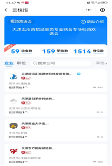 、天津外国语大学国际商学院开展“天津五所高校经管类专业联合专场视频双选会”,共有57家企业参加,提供154个职位和1533个岗位数。