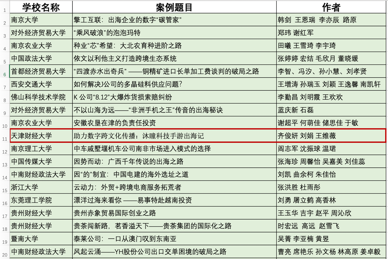 近日,全国国际商务专业学位研究生(MIB)教指委示范案例入库征集结果公布,六合彩